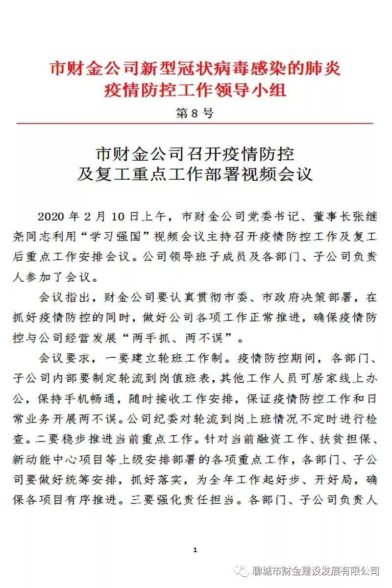 市財(cái)金公司召開疫情防控 及復(fù)工重點(diǎn)工作部署視頻會議
